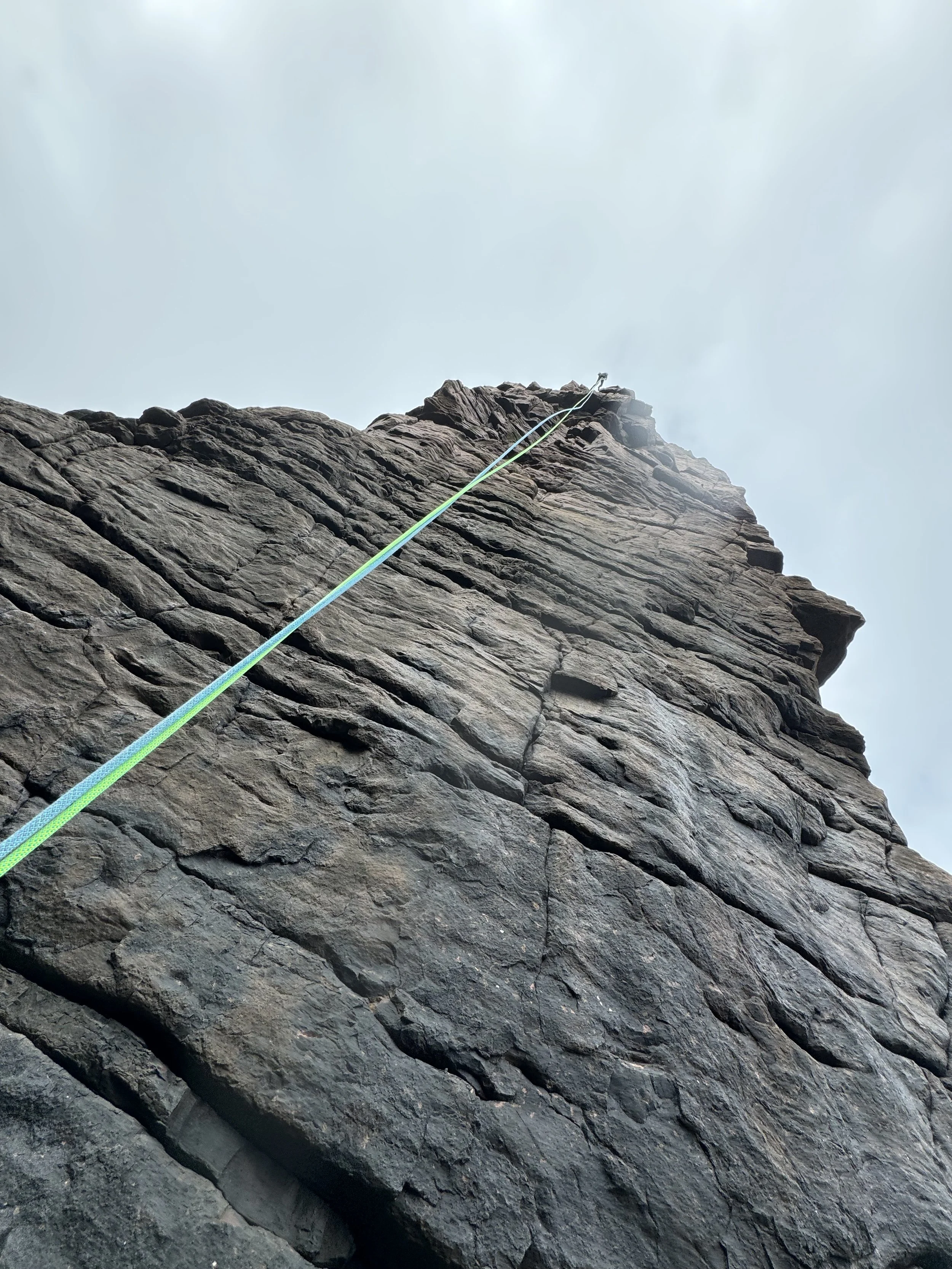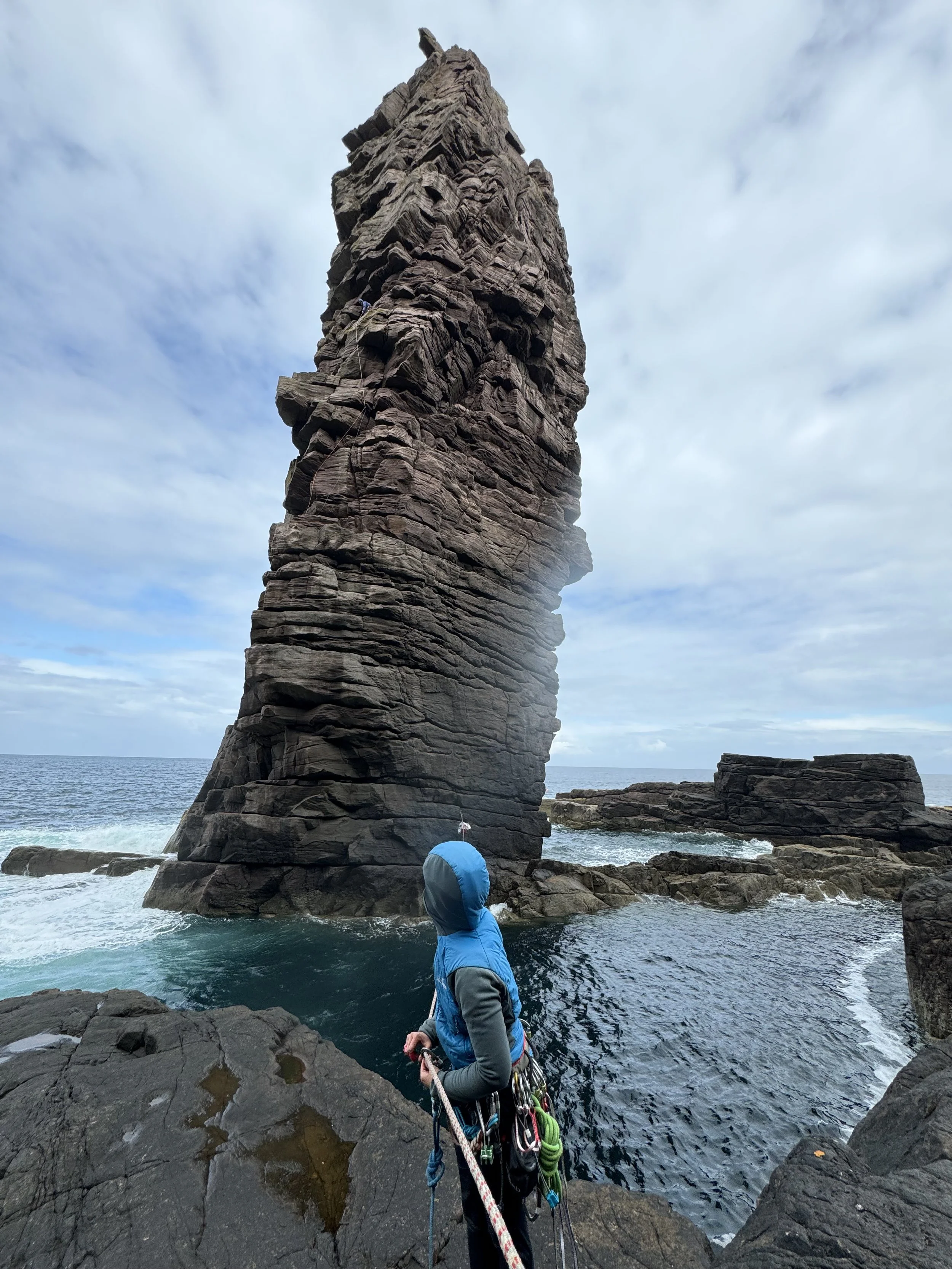Three pitches lead up to the top of the sea stack.