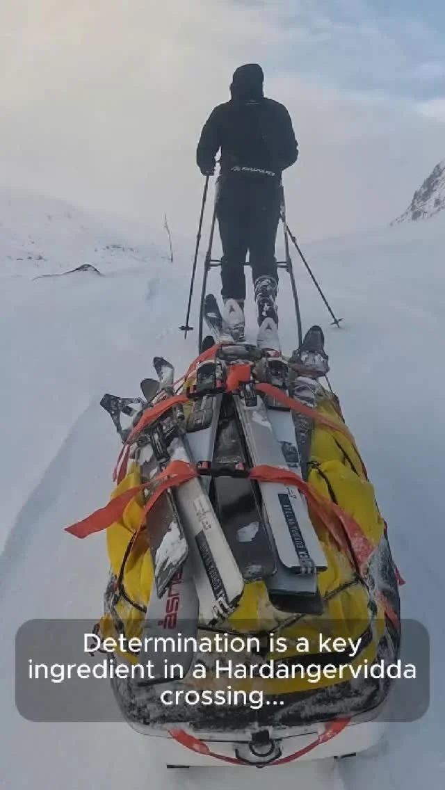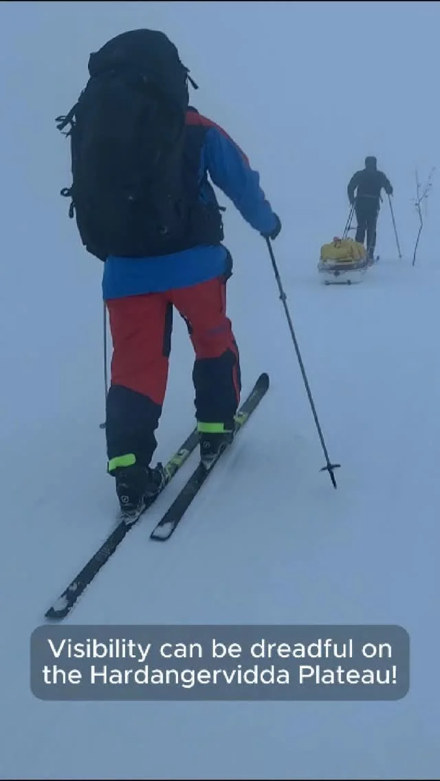 I love the Hardanger plateau in the winter. The logistics are slick with minimal faff. You step off the train at Finse and, within a few metres, you’re pulling your pulk across the snow. It’s hard to beat that level of access. The terrain changes constantly – high plateau sections, steep punchy ascents, and long stretches across frozen lakes. The trails are marked earlier than in most areas. DNT marks them with willow wands every 10m, carefully avoiding avalanche terrain and other hazards, giving confidence for route planning in poor visibility.