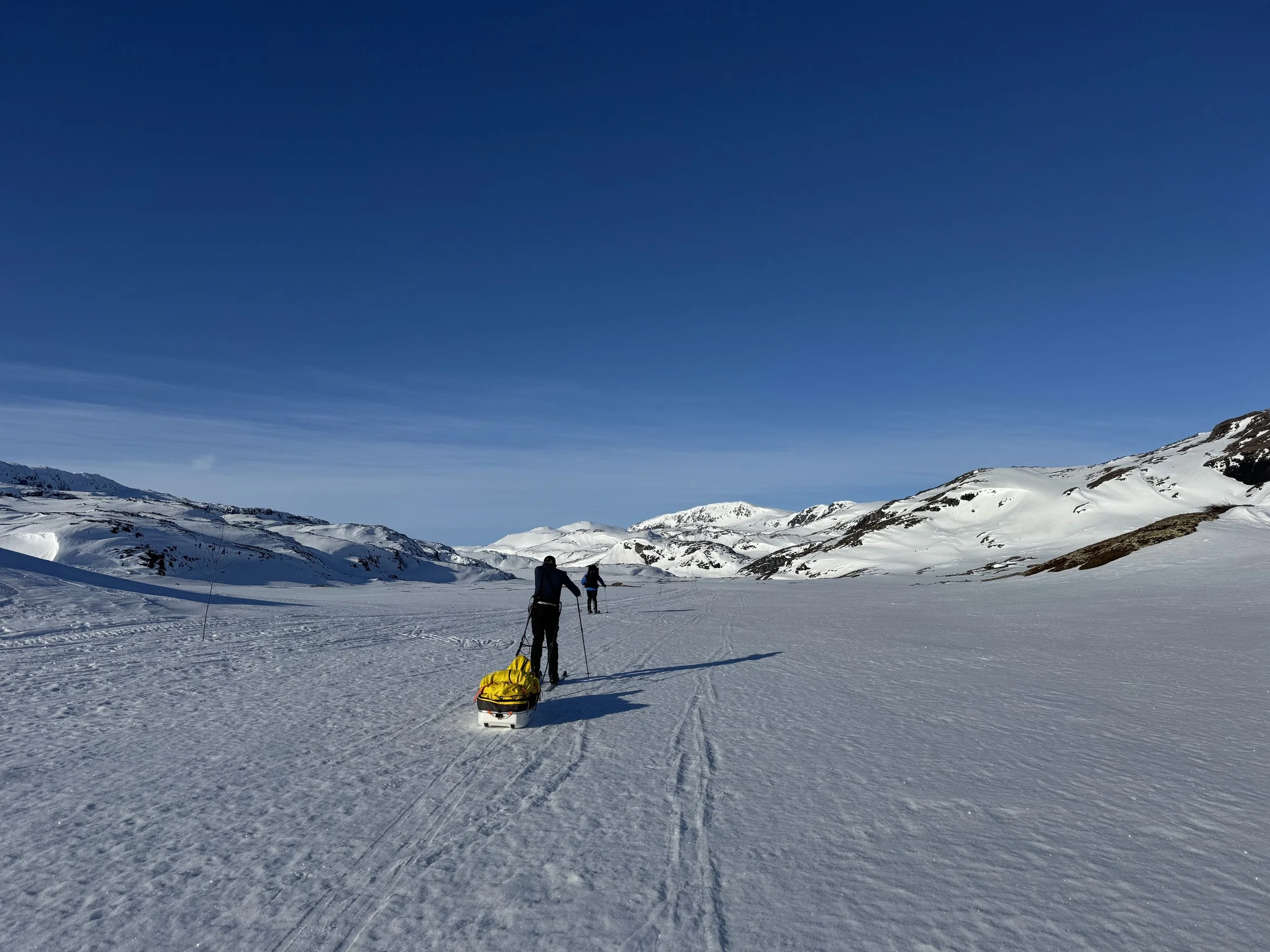 It has fewer huts, and the descent into Rjukan is steep – but can be avoided via the ski lift or a longer route. It’s an excellent option for those training for future expeditions to Svalbard or Greenland. You’ll get a feel for self-supported movement, winter camp management, and working with pulks in a cold and demanding environment.