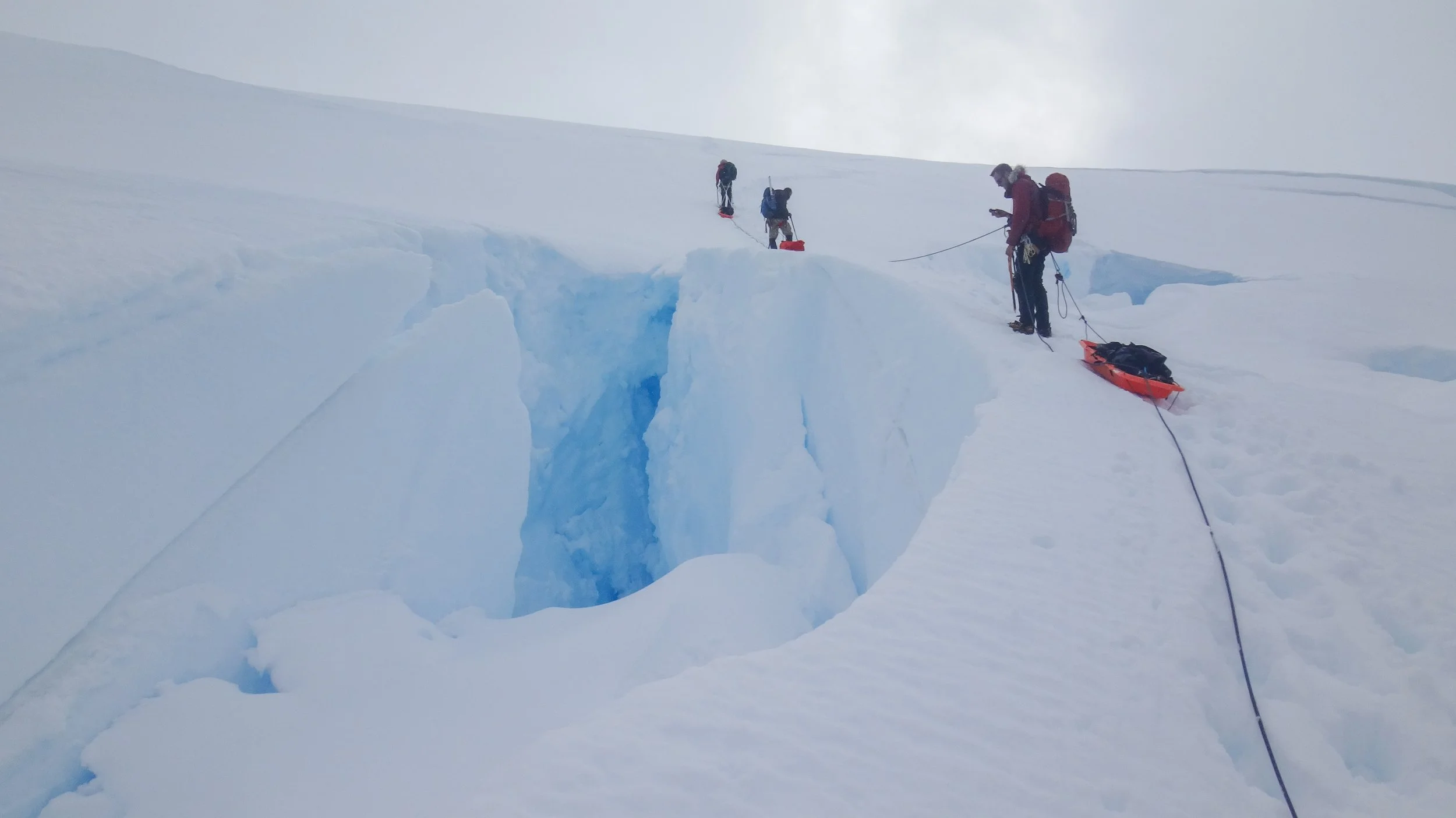 • Roped Team Travel: Move as part of a roped team to safely traverse crevassed terrain, ensuring group safety and cohesion.